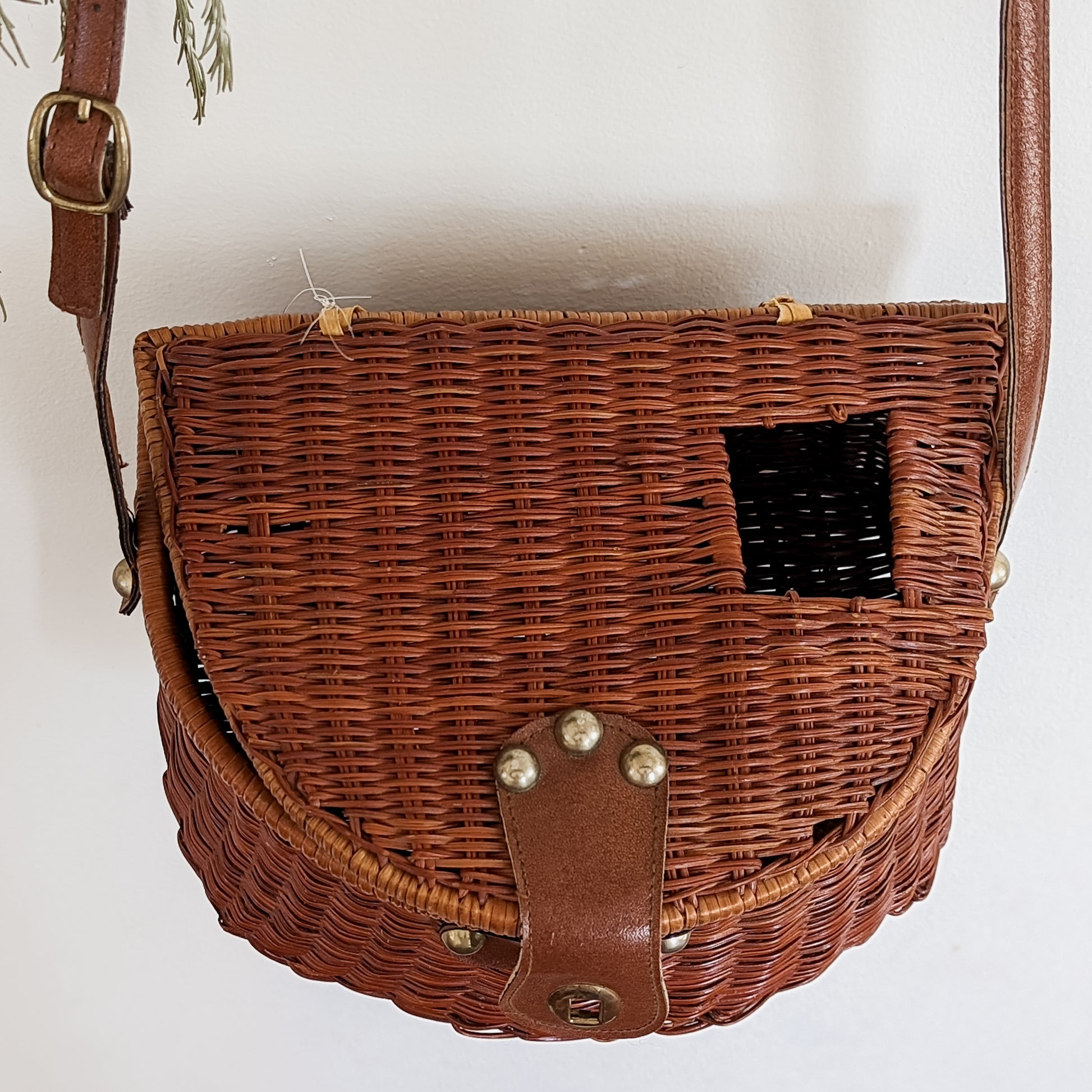 Woven Creel Basket / Foraging Basket with Leather Strap