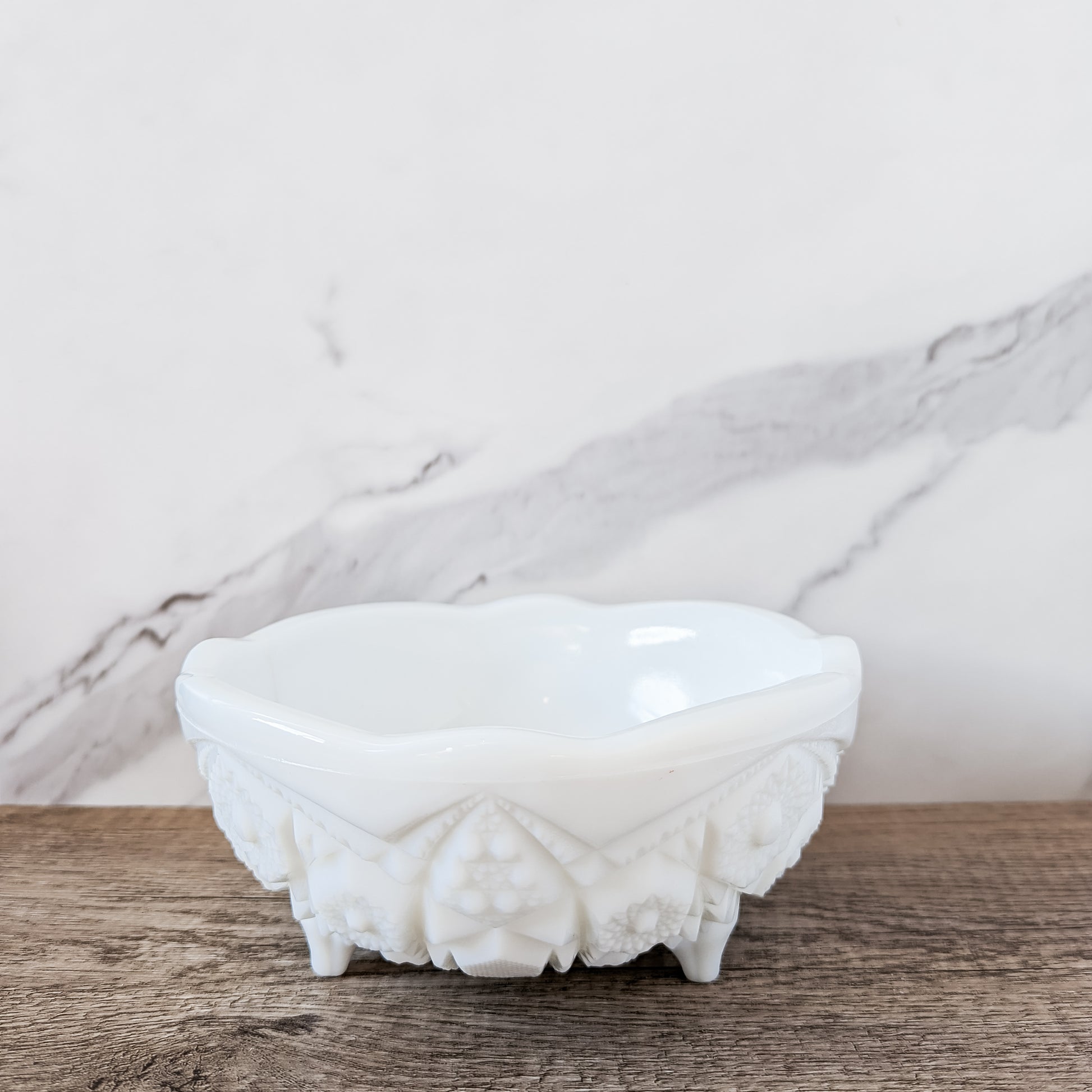 McKee Milk Glass "Toltec" 3-Footed Pedastal Bowl