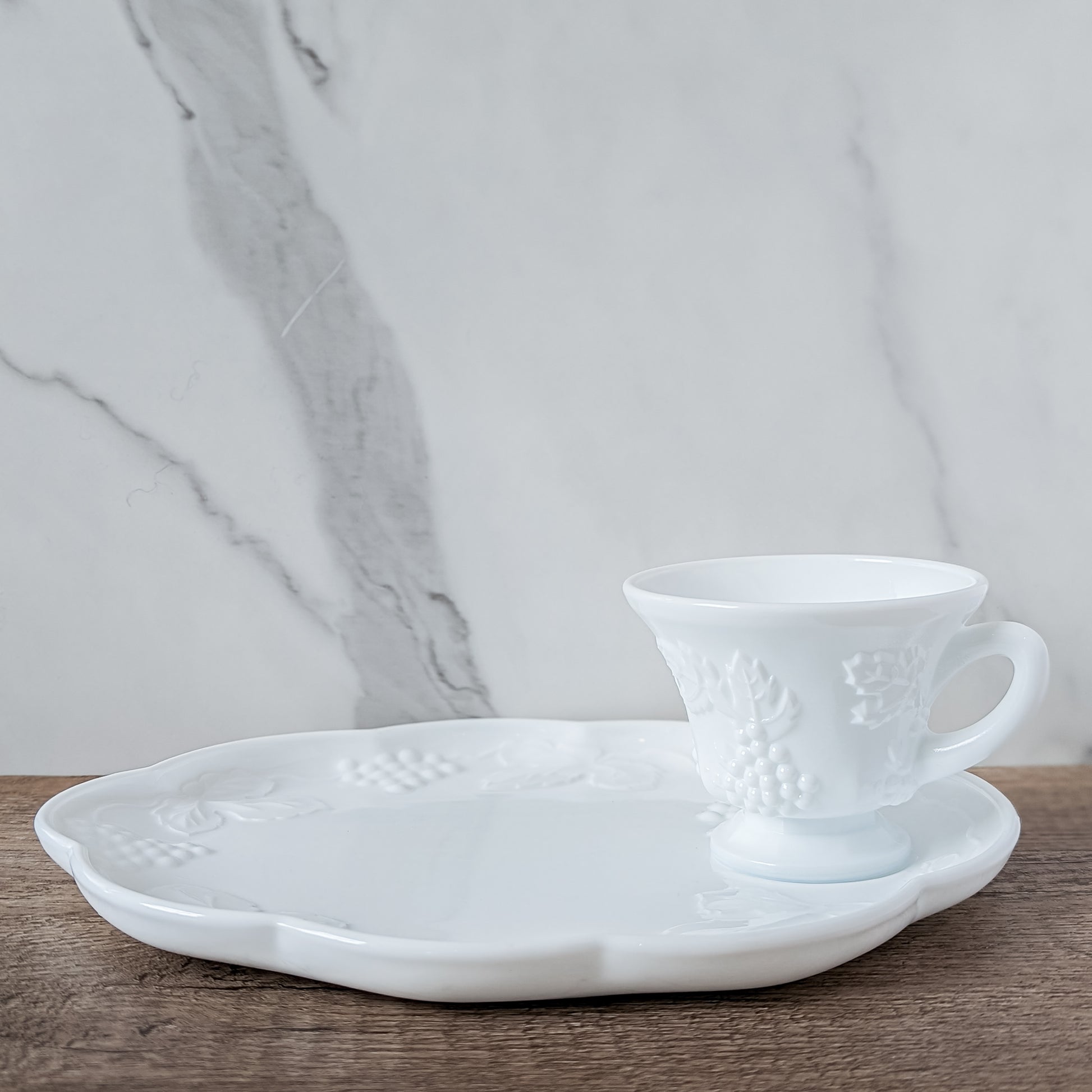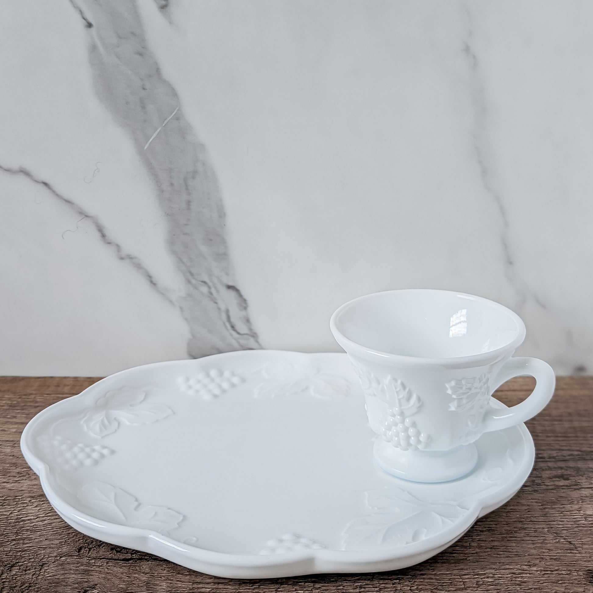Milk Glass "Colony Harvest" Tea Cup and Snack Plate (set of 4 or set of 8)