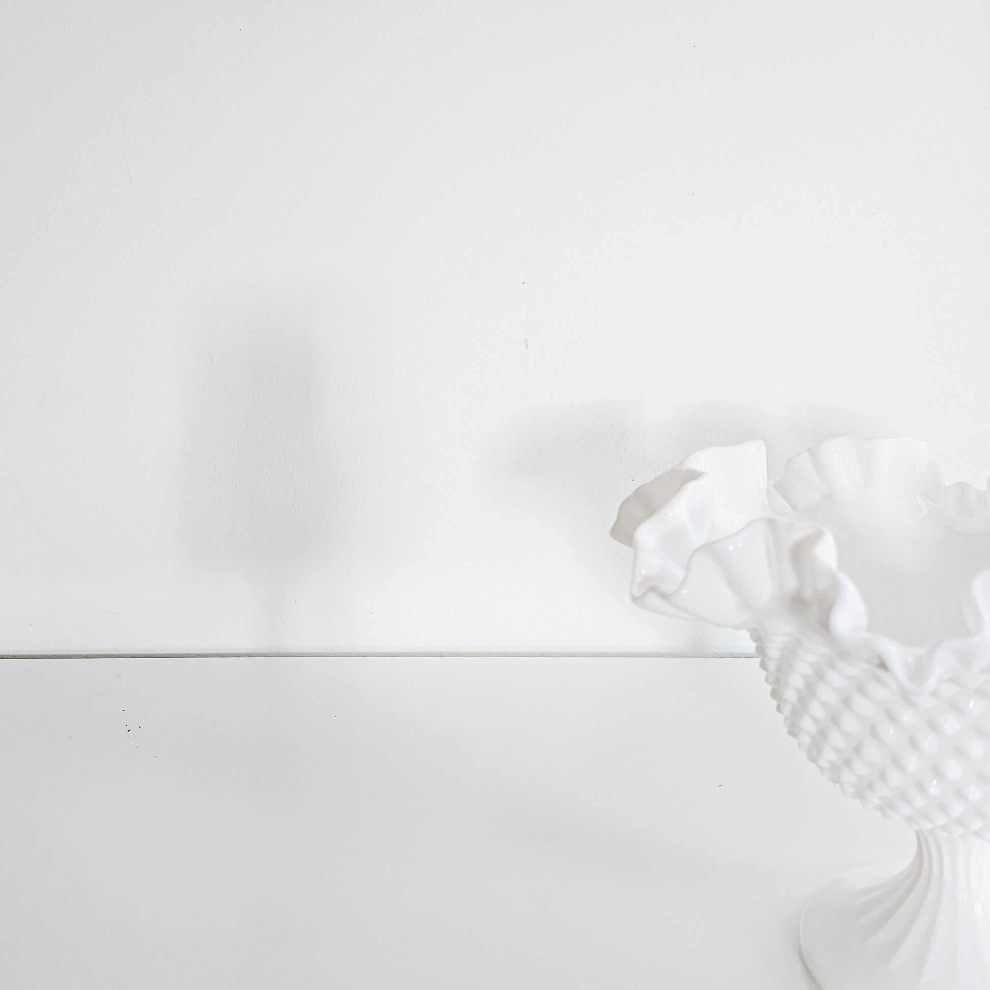 Fenton Ruffled Milk Glass "Hobnail" Compote (large)