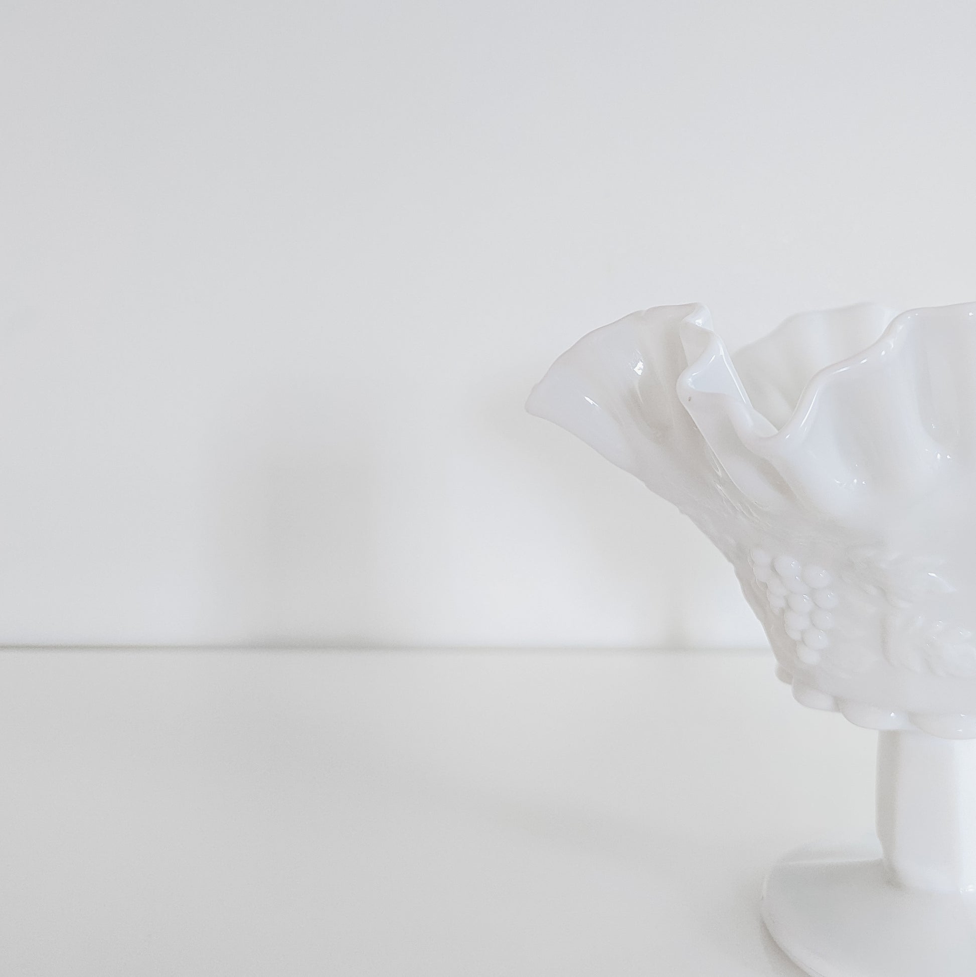 Westmoreland Ruffled Milk Glass "Paneled Grape" Compote (medium)